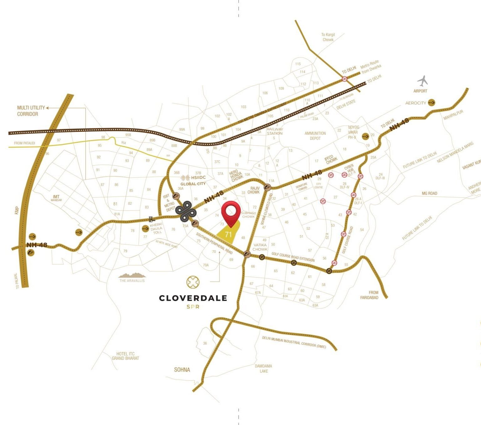Key Corridors Nearby :- Close to Dwarka Expressway, NH-48, DMIC/ Sohna Elevated Road and Golf Course Road.